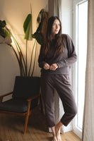 המכנסים עשויים מבד פרנץ טרי 100% כותנה. מגיעים בצבעים: מנומר, חום שוקולד ושמנת.