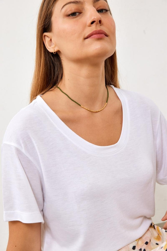 על המוצר שרשרת עדינה העשוייה משילוב של חרוזי מיוקי ואלמנטים מזהב.