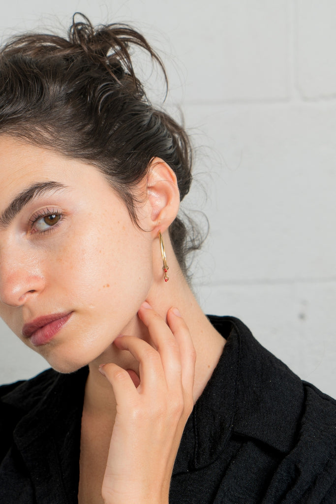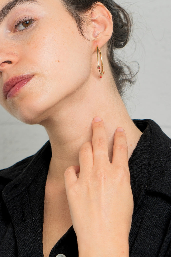 עגילי אליפסה בשילוב חרוזי מיוקי אדומה.