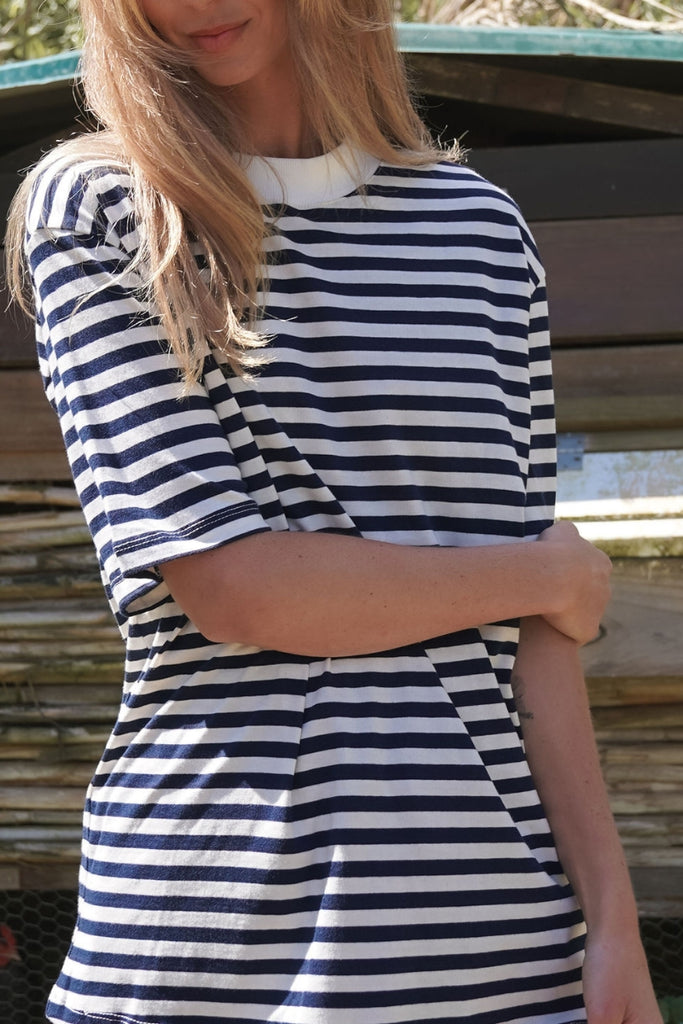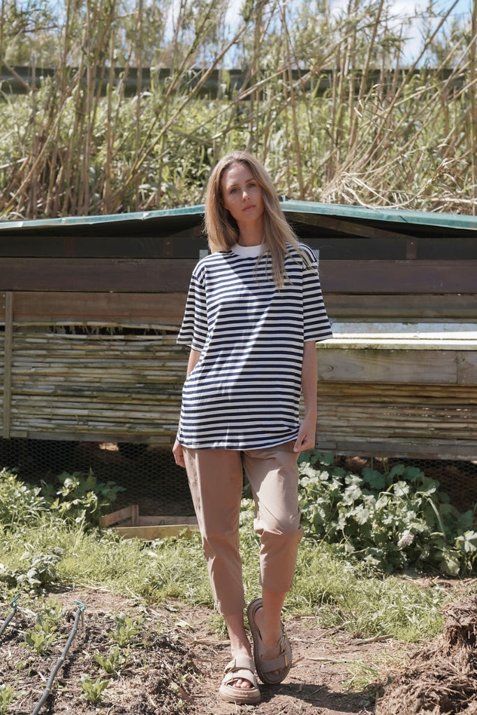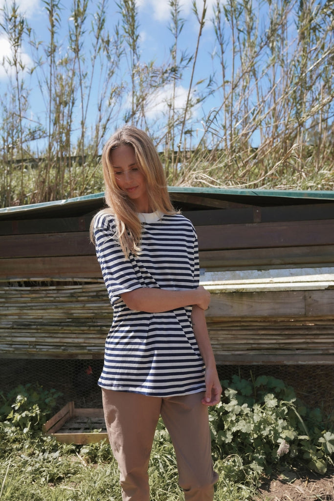 חולצת טי פסים- נייבי שמנת
