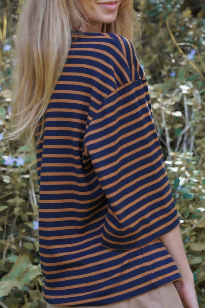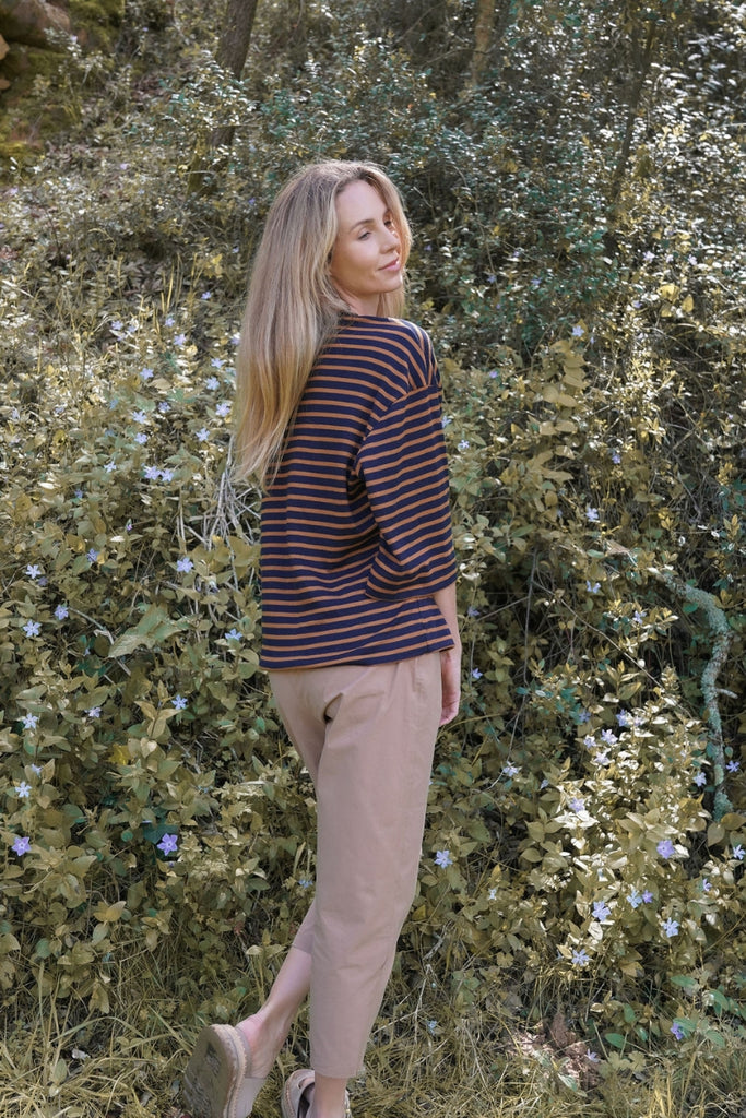 על המוצר חולצת טי שירט בגזרה ישרה, בעלת שרוול 3/4.