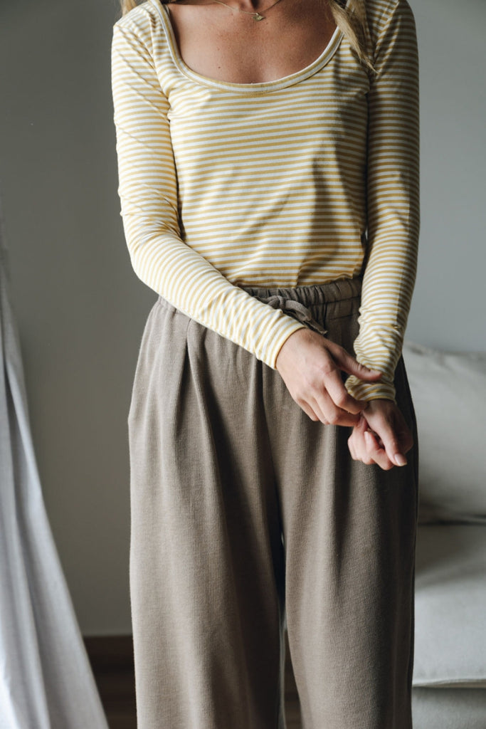 החולצה עשויה מבד סריג 100% כותנה ומגיעה בפסים: צהוב לבן, נייבי לבן, שחור לבן ואדום לבן.