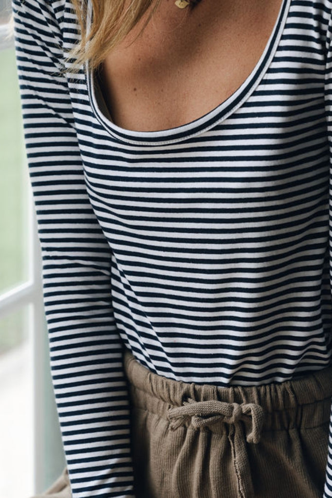החולצה עשויה מבד סריג 100% כותנה ומגיעה בפסים: צהוב לבן, נייבי לבן, שחור לבן ואדום לבן.