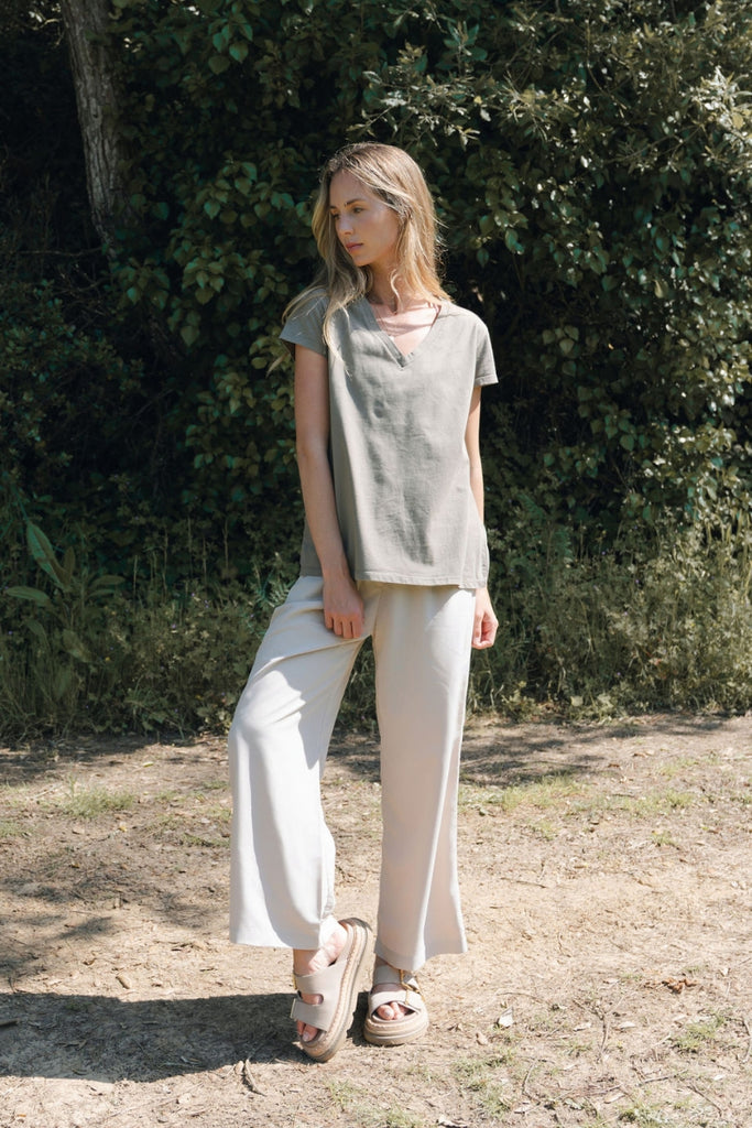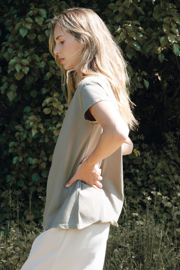 אני בוחרת בקפידה בדי פשתן, כותנה אורגנית וממוחזרת, ויסקוזה ובדים טבעיים נוספים. למגע.