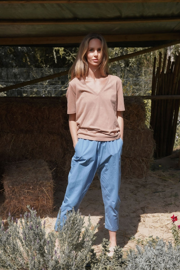 אני בוחרת בקפידה בדי פשתן, כותנה אורגנית וממוחזרת, ויסקוזה ובדים טבעיים נוספים. למגע.