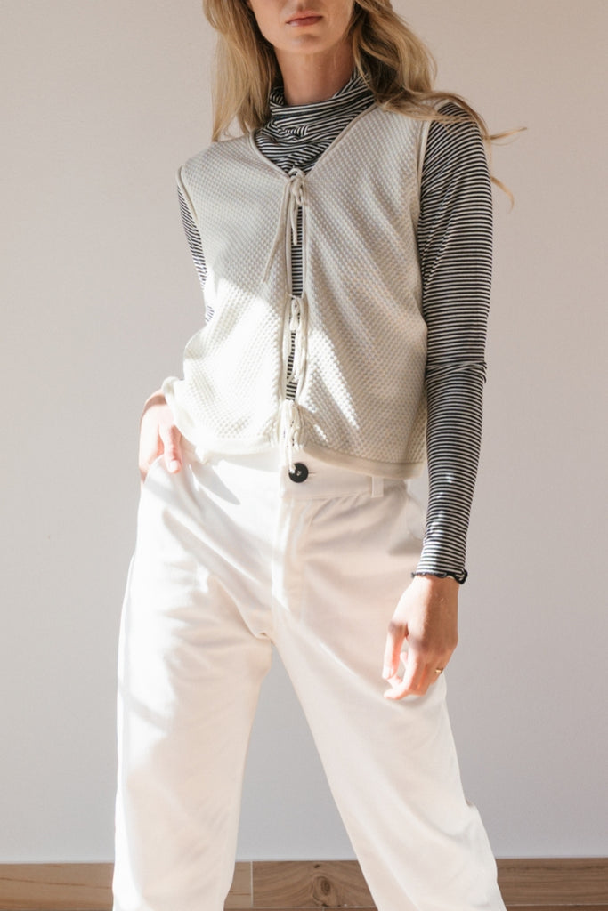 ווסט סרוג עם סגירת קשירות בחלק הקדמי . מחמיא לגוף, נעים בטירוף, מושלם גם ליום יום וגם לערב :)