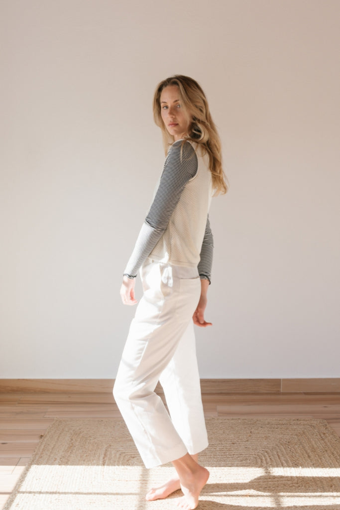 אני בוחרת בקפידה בדי פשתן, כותנה אורגנית וממוחזרת, ויסקוזה ובדים טבעיים נוספים. למגע.