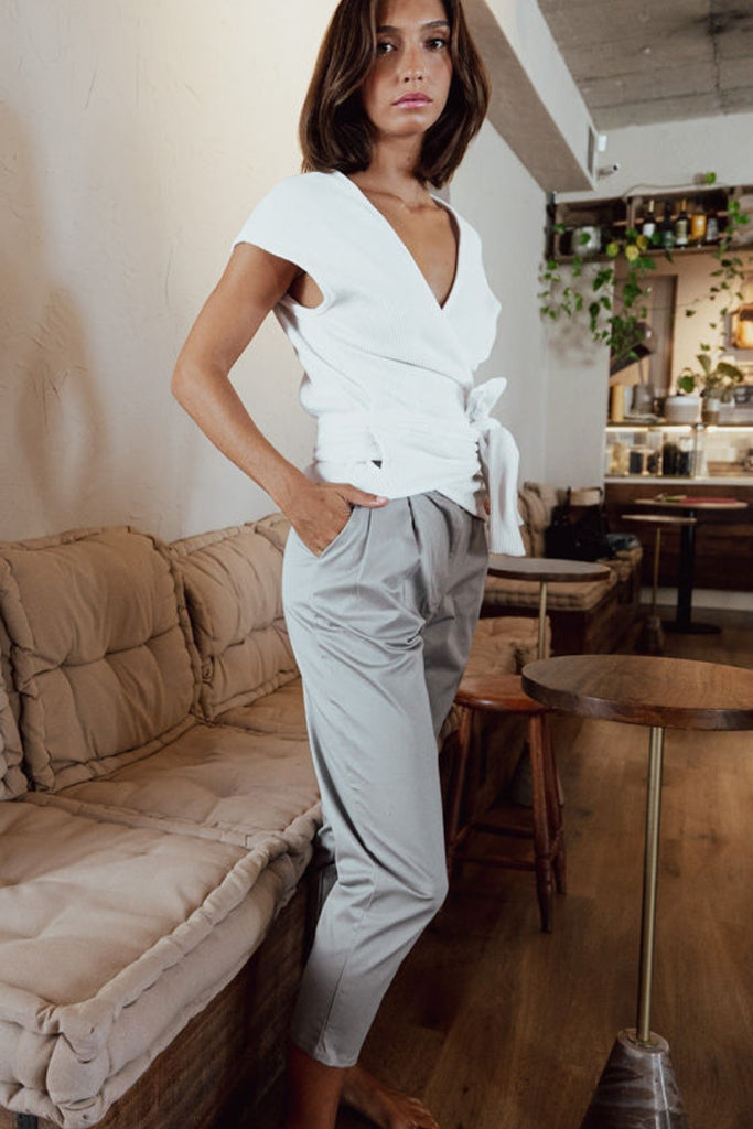 המכנסים עשויים מבד 100% כותנה. מגיעים בצבעים: לבן, אבן ואפור בהיר.