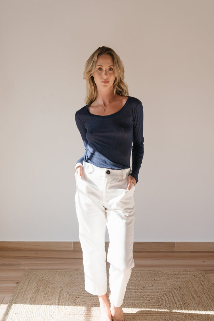 אני בוחרת בקפידה בדי פשתן, כותנה אורגנית וממוחזרת, ויסקוזה ובדים טבעיים נוספים. למגע.